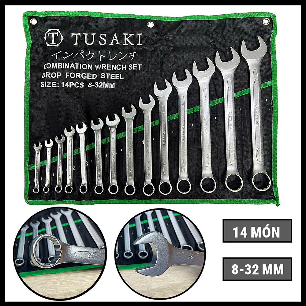 - Bộ cờ lê 8-32mm gồm : 8,9,10,12,13,14,15,17,19,22,24,27,30,32mm 14PCS
