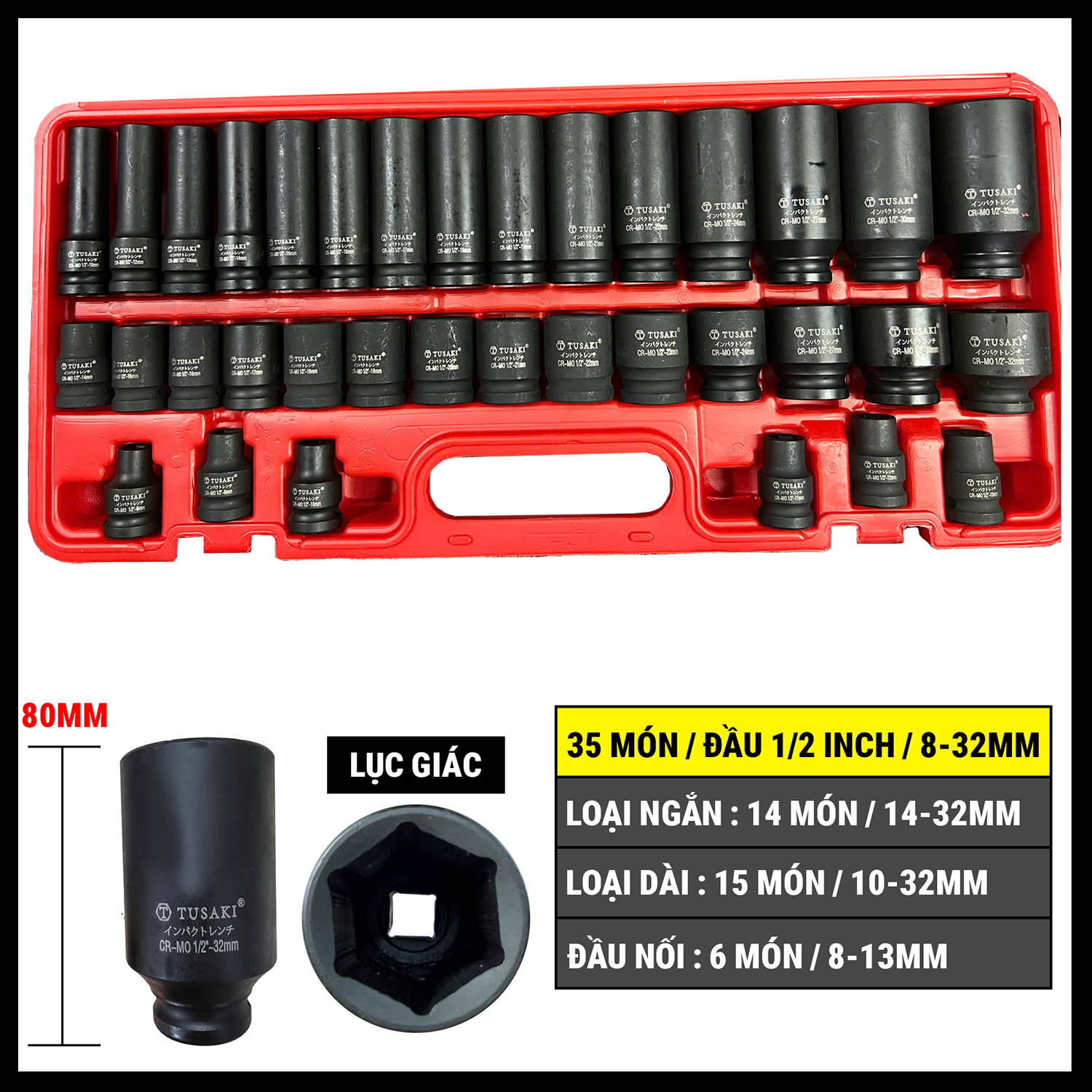 Bộ khẩu 1/2 inch 35 món TUSAKI
