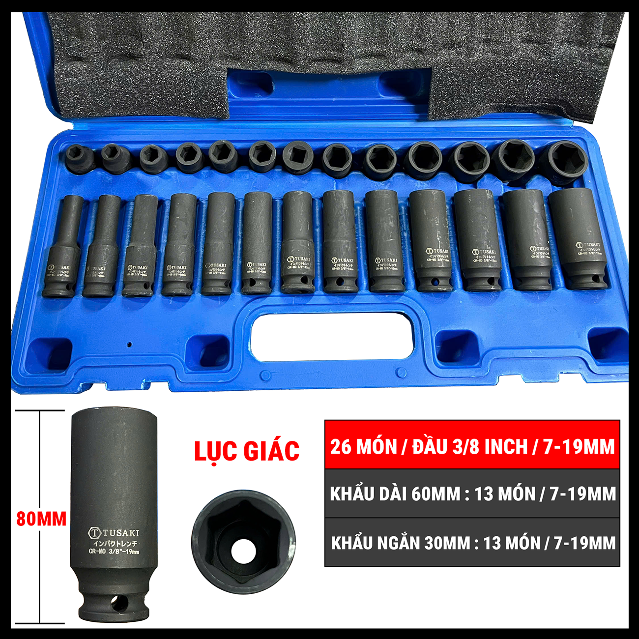 Bộ khẩu 3/8 inch 26 món là dụng cụ không thể thiếu trong hộp đồ nghề của mọi thợ kỹ thuật, gara sửa chữa ô tô và xe máy. Với kích thước đầu nối 3/8 inch (9.5mm) lý tưởng, bộ khẩu này cung cấp sự cân bằng hoàn hảo giữa lực siết và độ linh hoạt khi thao tác tại các không gian hẹp. Đây là bộ tuýp 3/8 inch lục giác đa năng, phù hợp với hầu hết các loại bu lông và đai ốc tiêu chuẩn.