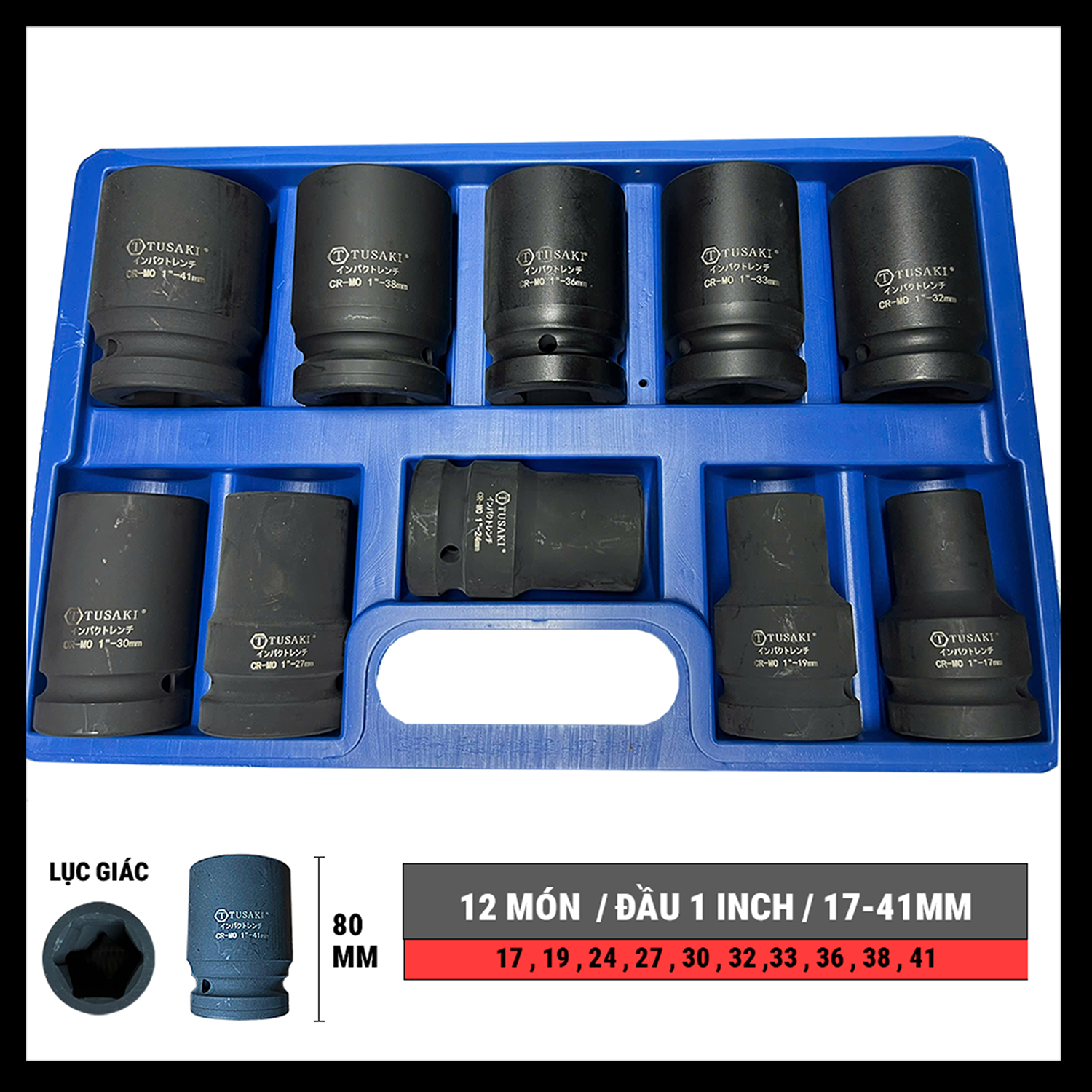 Bộ tuýp 1 inch 10 chi tiết TUSAKI là dụng cụ không thể thiếu cho thợ chuyên nghiệp cần độ bền và hiệu suất cao trong công việc hàng ngày.