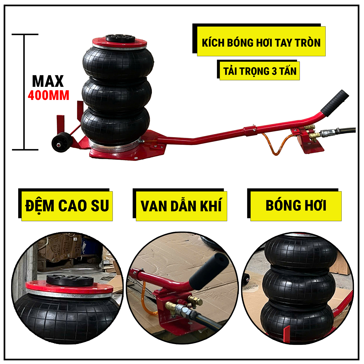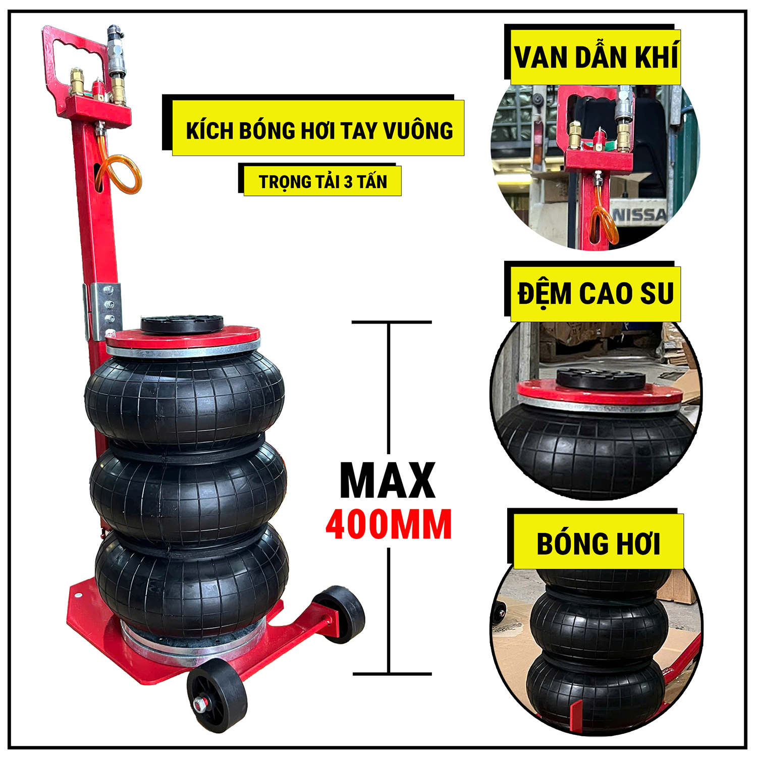 Kích bóng hơi TUSAKI giúp tiết kiệm sức lao động, tăng năng suất làm việc và đảm bảo an toàn tuyệt đối cho người vận hành. Thiết kế chắc chắn, van an toàn và hệ thống khí nén chất lượng cao mang đến sự ổn định trong mọi nâng hạ.