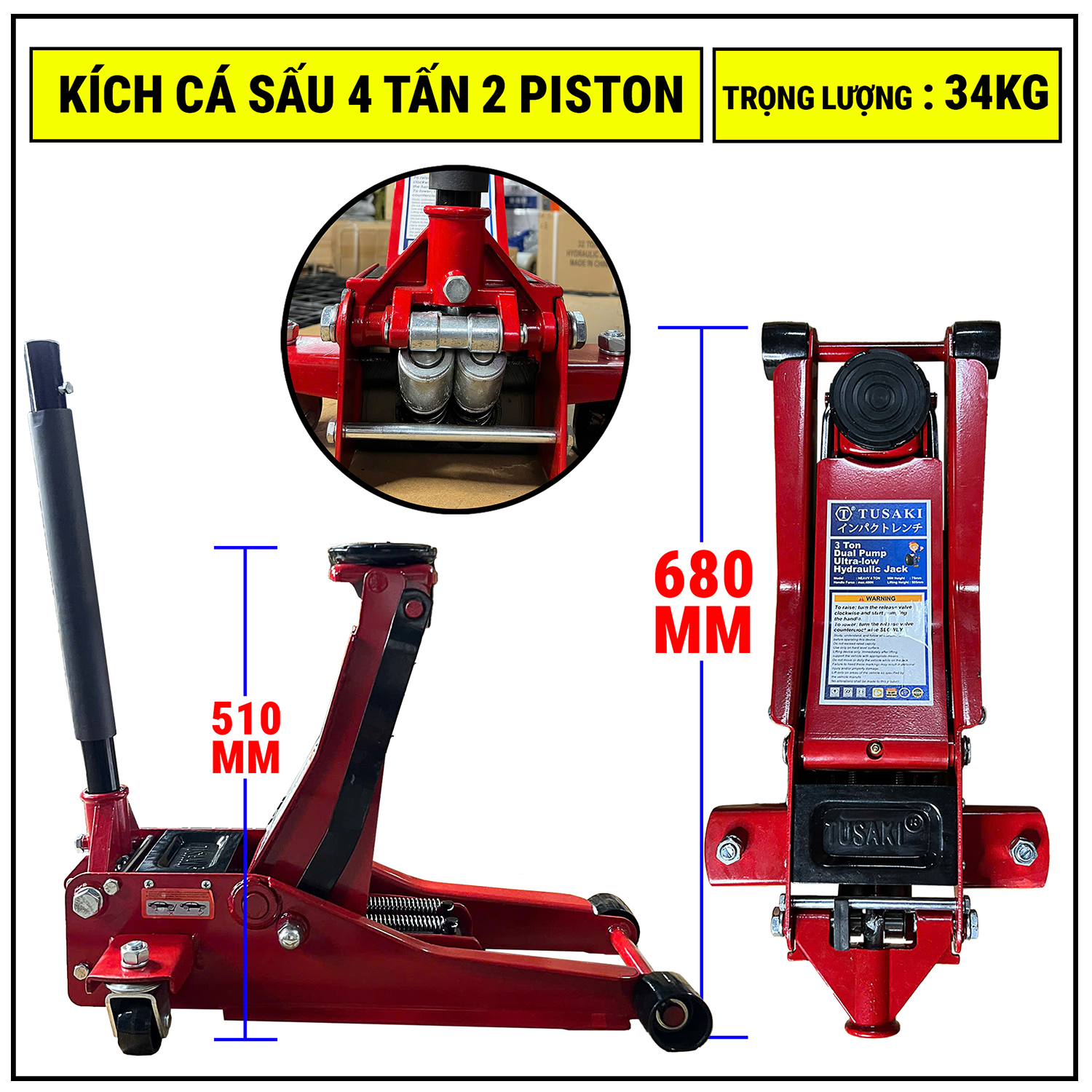 Được chế tạo từ thép hợp kim cao cấp, kích TUSAKI 3 tấn có khả năng chịu lực tốt, chống mài mòn và gỉ sét, đảm bảo tuổi thọ lâu dài. Thiết kế thấp, gọn gàng, dễ thao tác dưới gầm xe, kết hợp bánh xe chắc chắn giúp di chuyển linh hoạt.