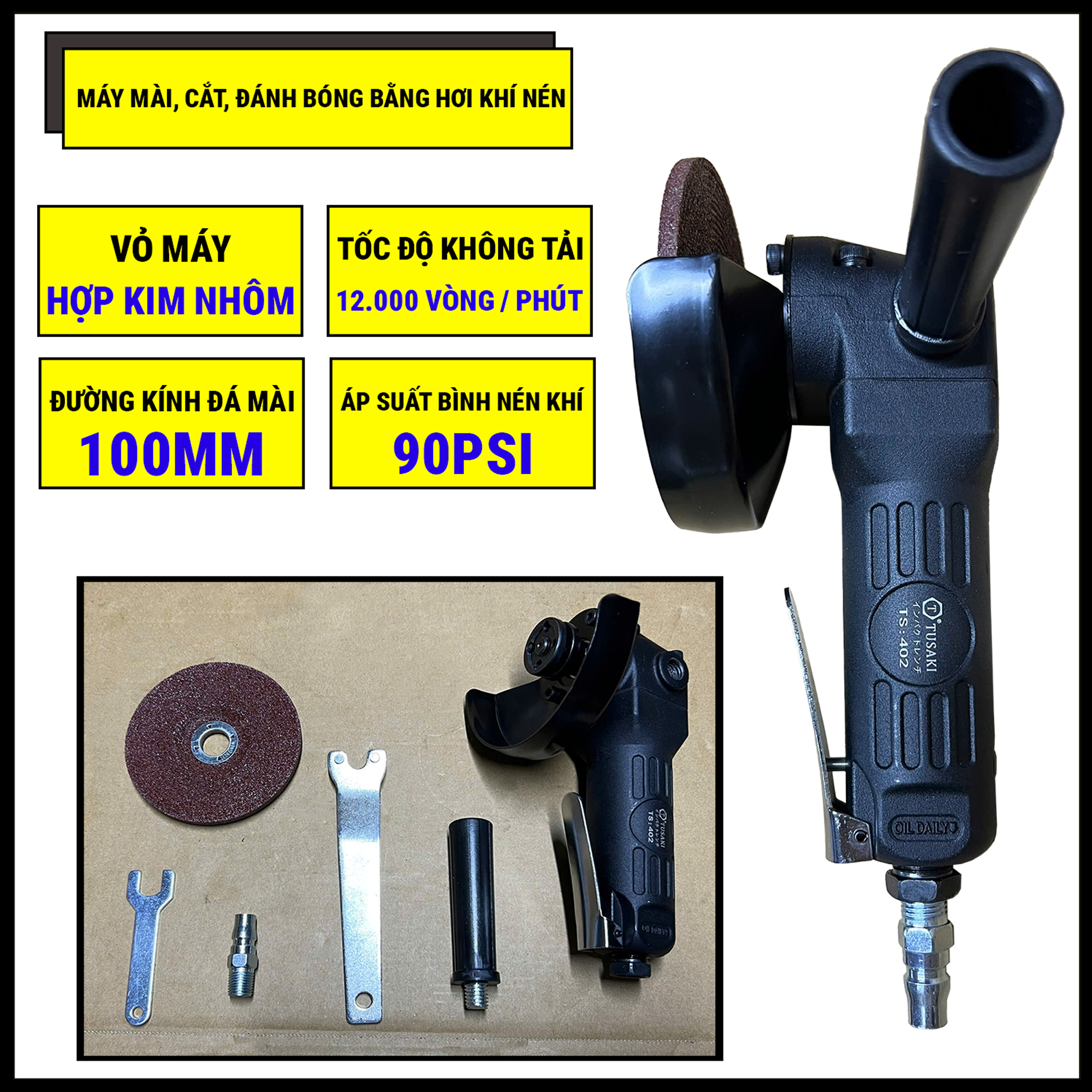 TS-402 sở hữu thiết kế nhỏ gọn, dễ cầm nắm, cho phép thao tác linh hoạt ở mọi vị trí, kể cả các khu vực hẹp. Với cơ chế truyền động khí nén ổn định, máy cho khả năng mài mịn nhanh, cắt gọn lẹ và đánh bóng hiệu quả trên nhiều loại vật liệu như kim loại, inox, thép, nhôm, gỗ và nhựa cứng.