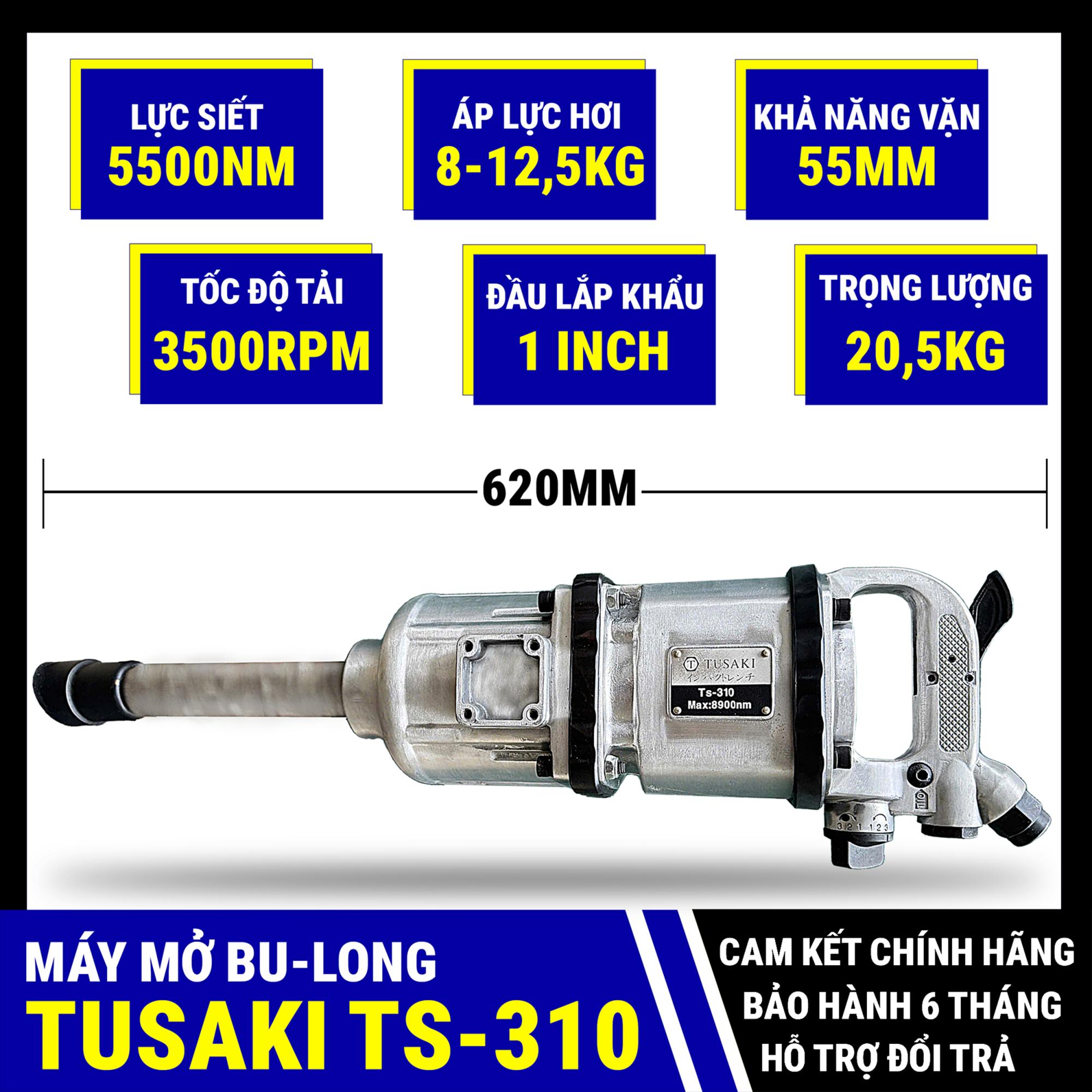 Súng mở ốc 1 inch Tusaki TS-310 chính hãng! Lực siết cực đại 4200Nm, chuyên dùng cho xe tải, container, máy công trình. Hiệu suất cao, tiết kiệm thời gian. Mua ngay & nhận ưu đãi lớn!