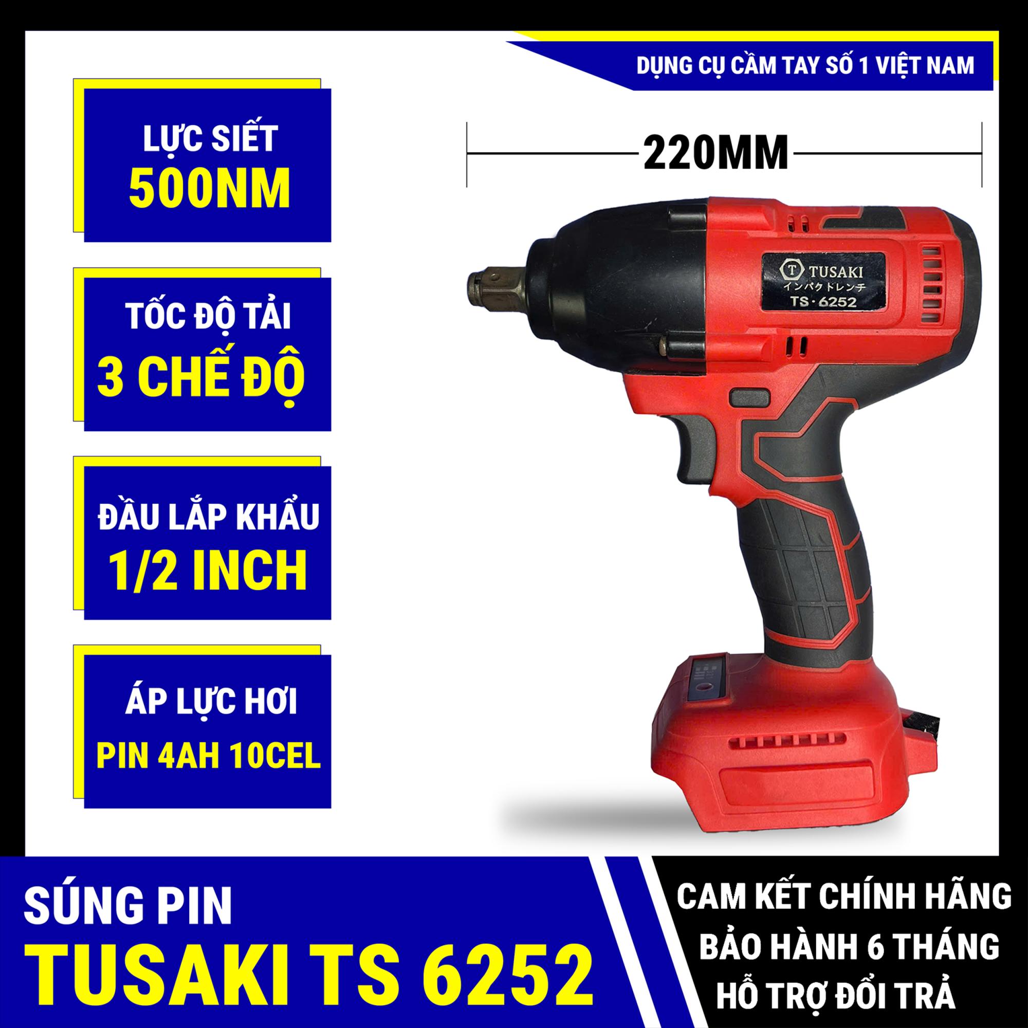 Súng Pin 1/2 inch Tusaki TS-6252 là thiết bị siết/mở bulong không dây thế hệ mới, mang lại sự kết hợp hoàn hảo giữa tính di động cao và sức mạnh vượt trội. Với thiết kế nhỏ gọn, nhẹ nhàng, TS-6252 là công cụ lý tưởng cho các thợ sửa chữa ô tô, xe máy, lắp đặt giàn giáo, hay làm việc ở những khu vực không có sẵn nguồn điện hoặc khí nén.